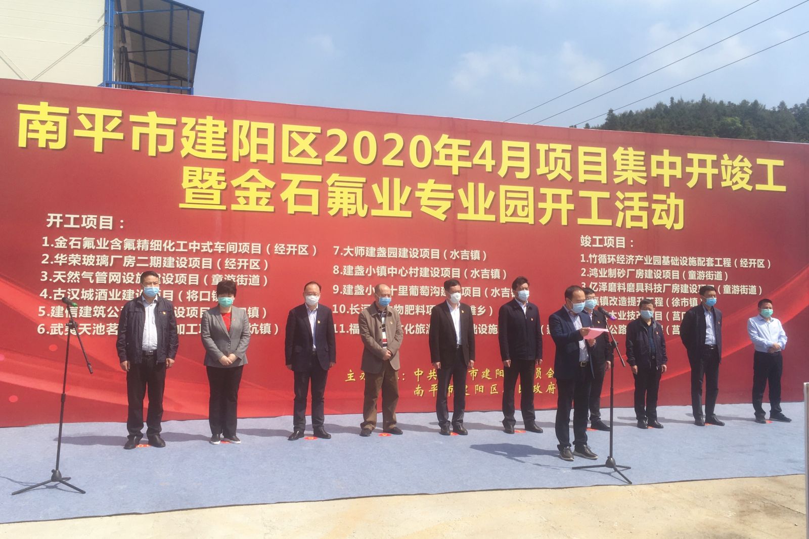 4月24日,我區(qū)舉行4月份重大項目集中開竣工儀式。南平市副市長何明星,建陽區(qū)委書記楊新強(qiáng)、區(qū)長魏敦盛等區(qū)黨政班子領(lǐng)導(dǎo),區(qū)直有關(guān)單位、項目業(yè)主單位主要負(fù)責(zé)人和監(jiān)理單位、施工單位代表參加活動。儀式現(xiàn)場,何明星宣布項目開工,楊新強(qiáng)致辭,魏敦盛主持,公司董事長陳建華代表項目業(yè)主發(fā)言。